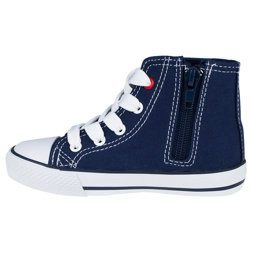 Baskets montantes grises en toile unie. Ouverture par lacets sur le devant. Ouverture zippée sur le côté pour les enfiler plus facilement. Inscription printée sur le côté. Doublure intérieure blanche . Surpiqûres contrastées. Semelle et bout contrastés en caoutchouc avec liseré contrasté