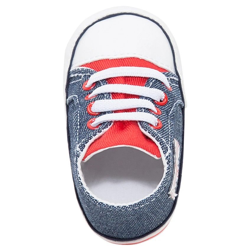 Baskets montantes souples en toile effet jeans. Ouverture devant par lacets. Patch drapeau sur le côté droit. Semelle en toile.