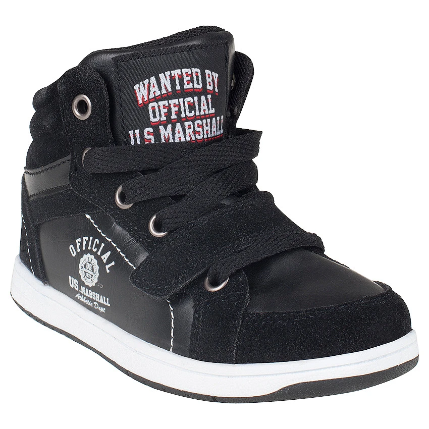 Baskets montantes aspect cuir US Marshall bi-matière. Inscription printée sur le côté. Ouverture par lacets devant et 1 scratch. Zip sur le côté. Bourrelet de renfort au col.