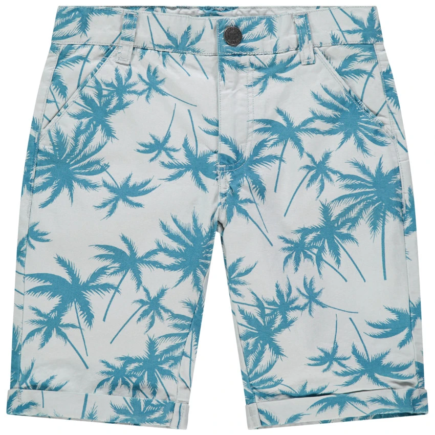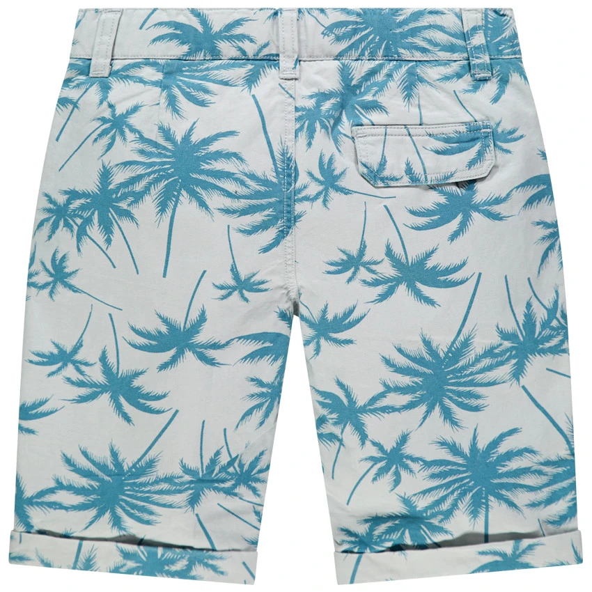 Bermuda à palmiers imprimés all-over. Taille ajustable de l’intérieur à passants. 2 poches italiennes devant. 1 poche à rabat au dos. Revers fixes.