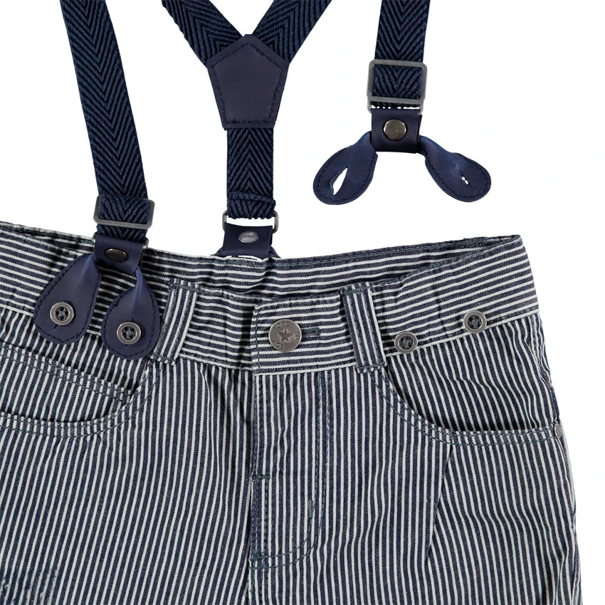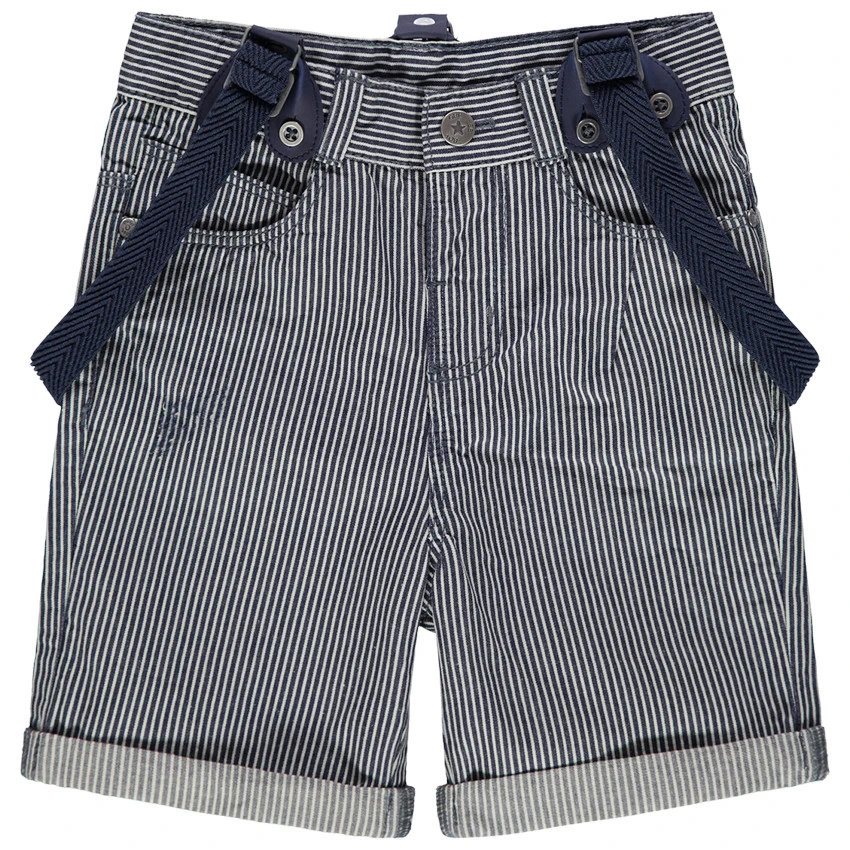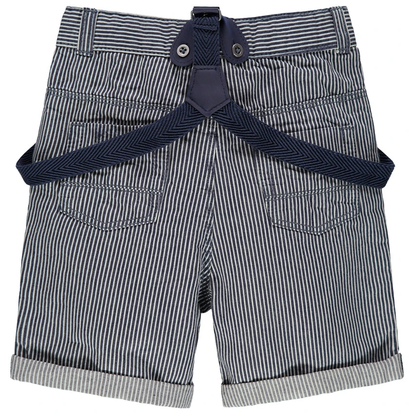 Bermuda à rayures all-over. Taille ajustable de l’intérieur par élastique et boutons. Ceinture à passants avec bouton et braguette zippée. 2 poches cavalières.