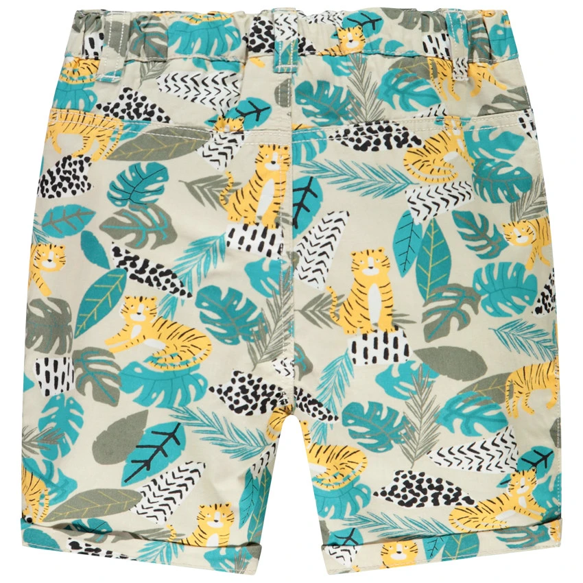 Bermuda en coton. Passants pour ceinture. Ouverture boutonnée sur le devant. Deux poches cavalières sur le devant. Revers sur le bas du bermuda. Imprimé jungle all-over.