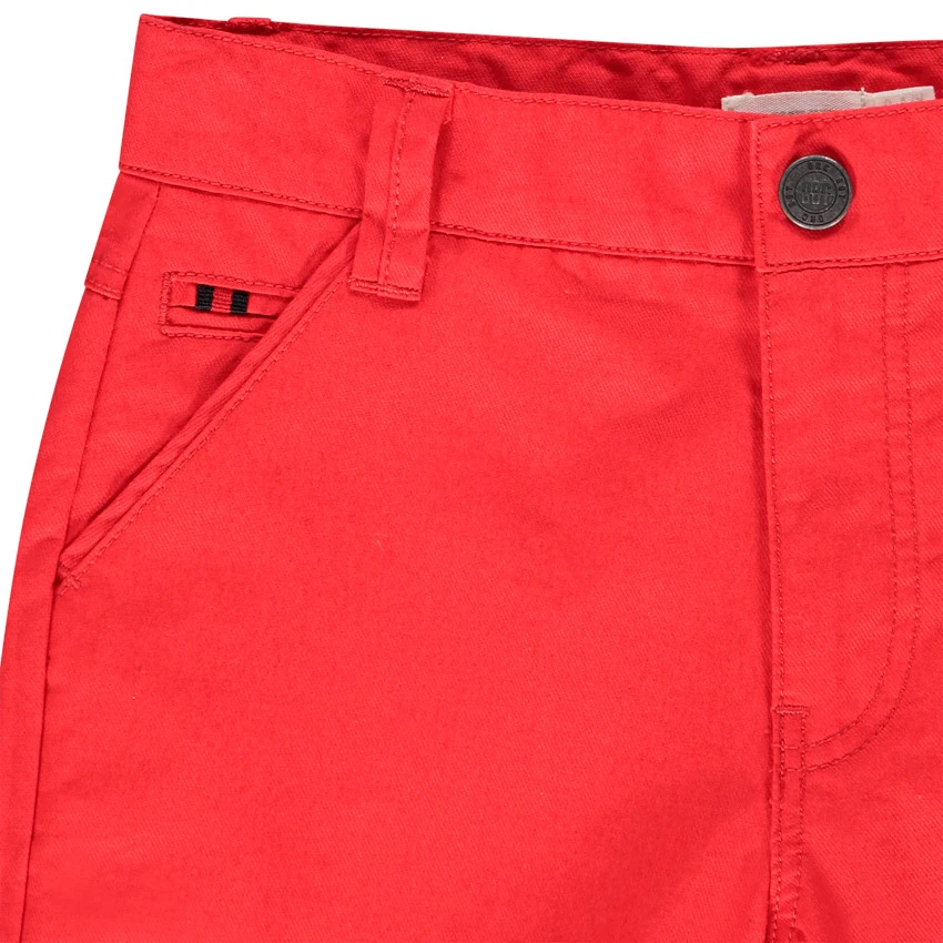 Bermuda en coton. Passants pour ceinture. Ouverture boutonnée et zippée sur le devant. Deux poches italiennes sur le devant. Une poche ticket. Revers sur le bas du bermuda. Deux poches passepoilées à l’arrière.