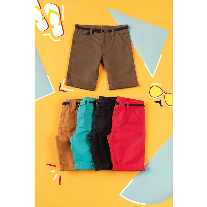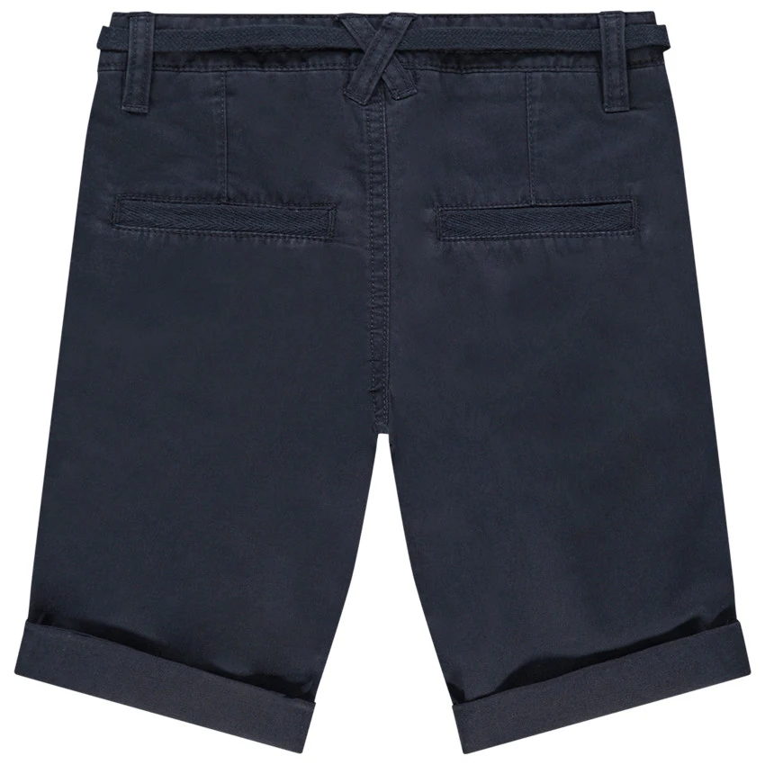 Bermuda en coton uni. Taille ajustable de l’intérieur par élastique et boutons. Ceinture à passants avec bouton et braguette zippée. 2 poches italiennes. Ceinture ajustable et amovible. 2 poches passepoilées au dos.