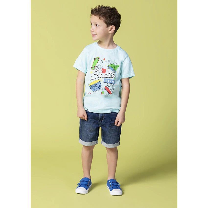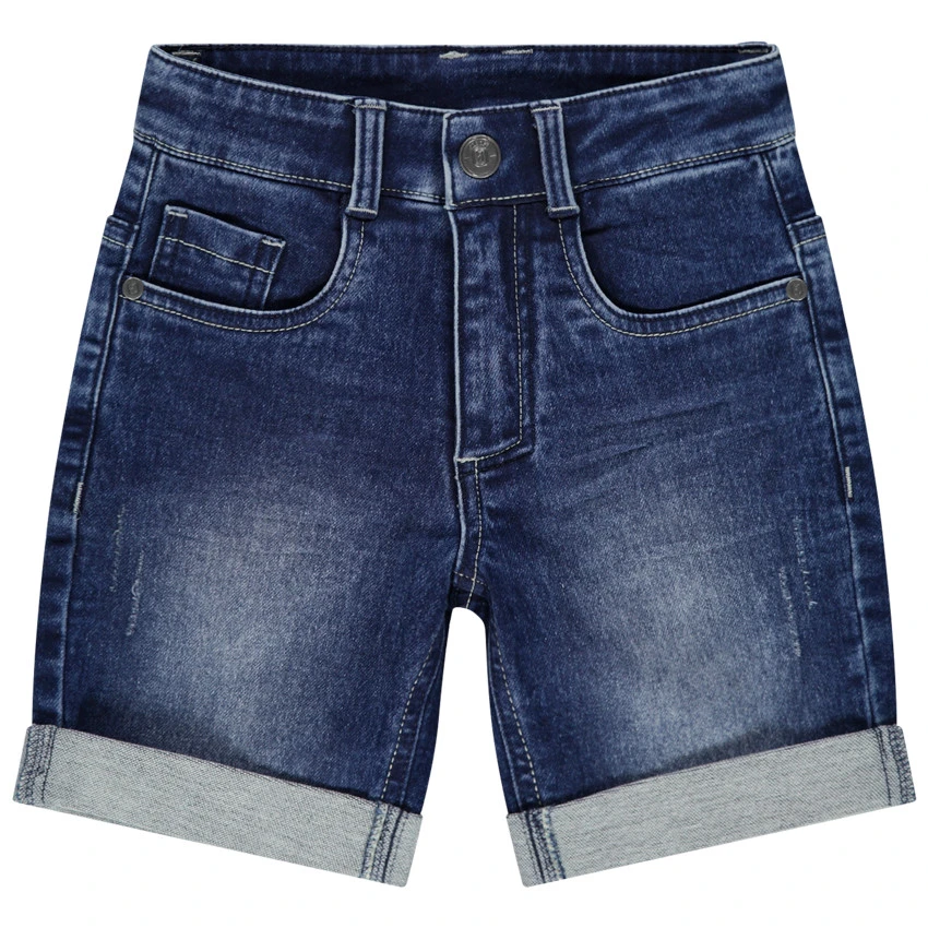 Bermuda en jean effet used. Taille ajustable de l’intérieur par élastique et boutons. Ceinture à passants avec bouton et braguette zippée. 2 poches cavalières et 1 poche ticket. 2 poches plaquées au dos.