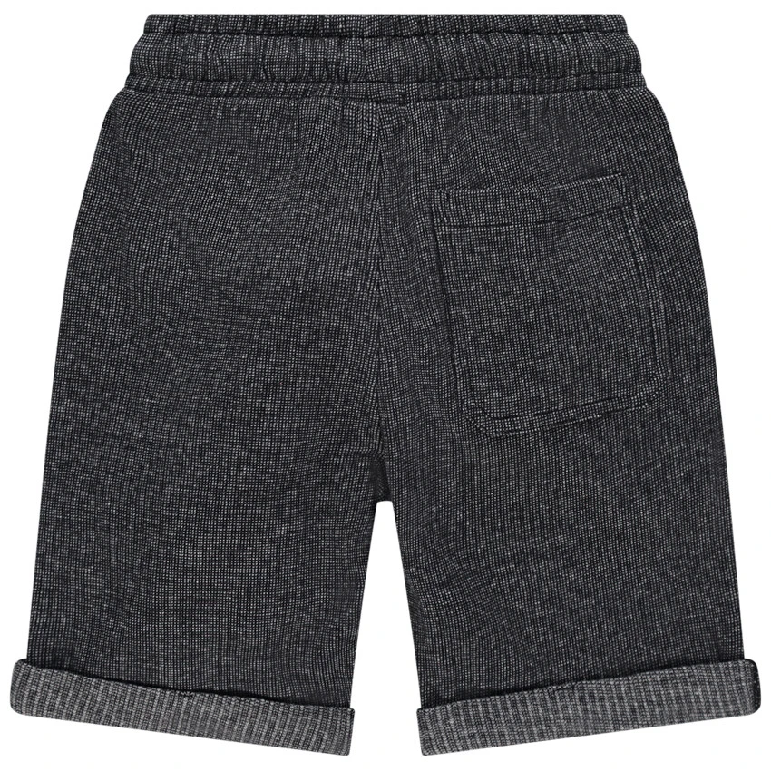 Bermuda en maille chinée. Taille élastiquée à cordons de serrage. 2 poches cavalières devant. 1 poche plaquée au dos.