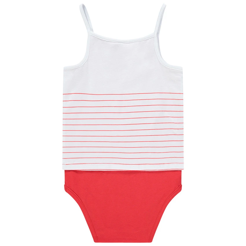 Body à fines bretelles effet 2 en 1. Minnie printée devant avec rayures. Entrejambe pressionné pour faciliter le change.