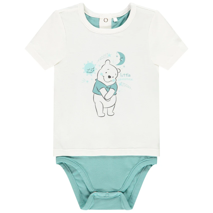 Body manches courtes. Col rond. Print Winnie sur le devant. Ouverture pressionnée au dos et à l’entrejambe.