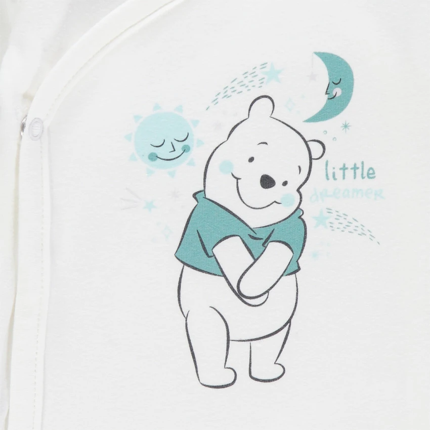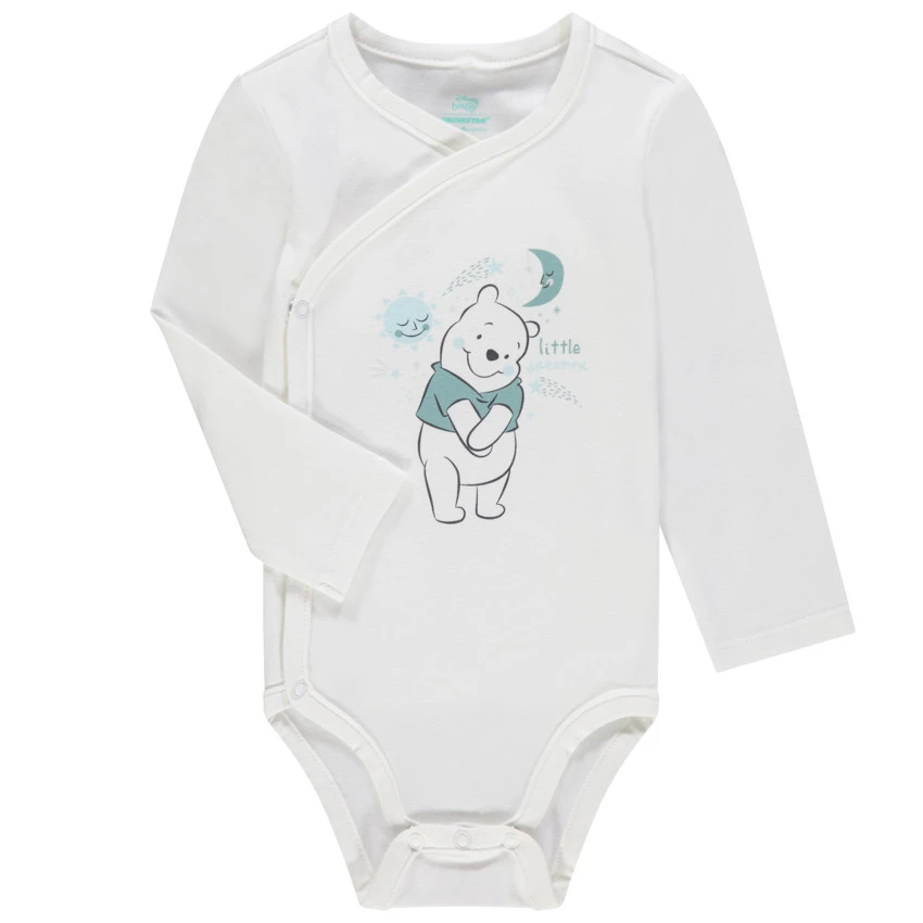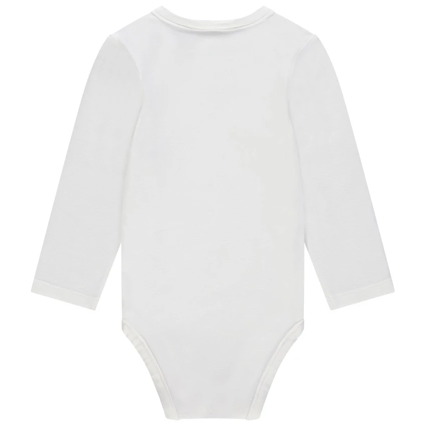 Body manches longues uni blanc. Coton issu de l’agriculture biologique pour respecter la peau de bébé et l’environnement. Ouverture pressionnée pratique devant et à l’entrejambe.