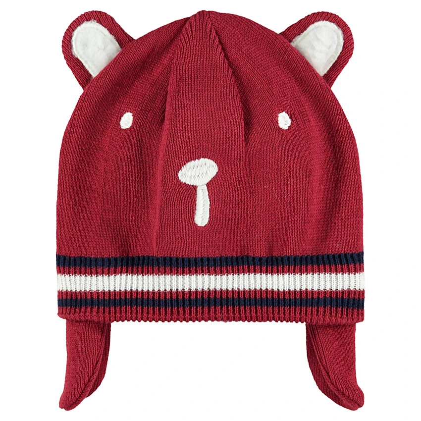 Bonnet en tricot. Doublure en jersey avec lettres printées. Oreilles en relief sur le dessus avec intérieur en sherpa. Détails brodés sur le devant. Bord-côte rectiligne.