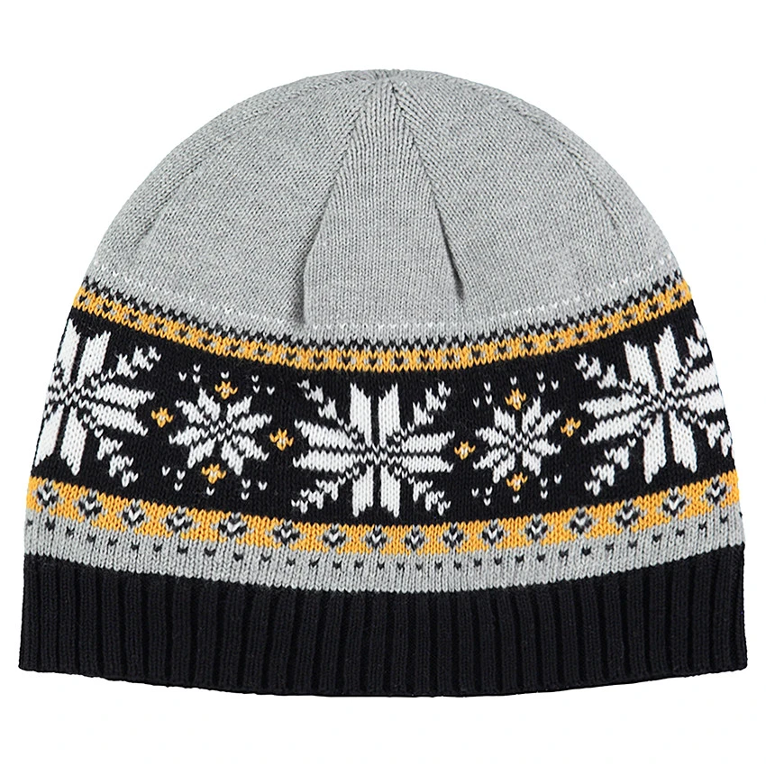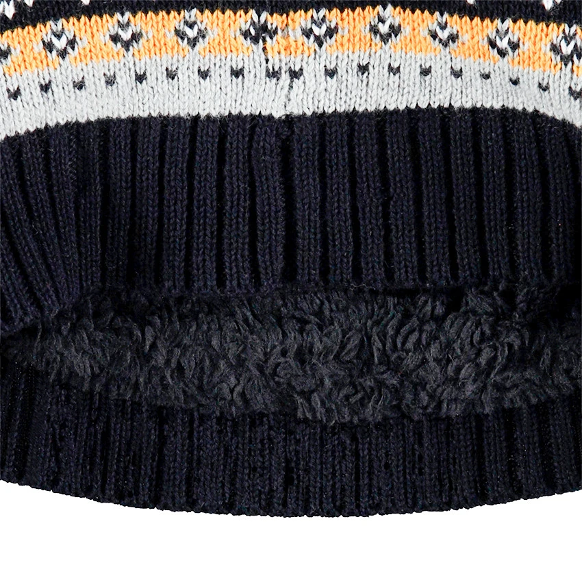 Bonnet en tricot. Doublure en sherpa. Motif jacquard esprit vintage. Finition bord-côte.