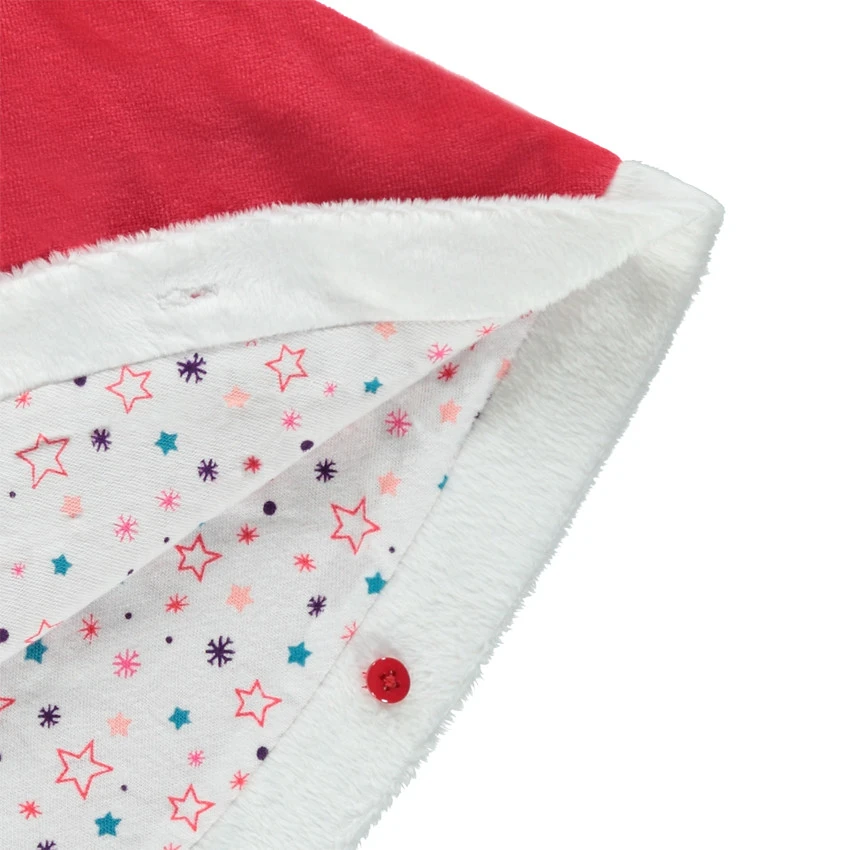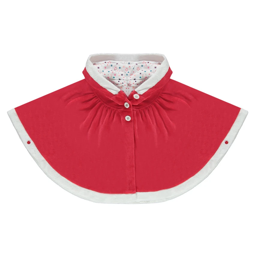 Cape à capuche en velours. Doublure en jersey imprimée all-over. Ouverture sur le devant. Séparation manches par bouton. Bordures en sherpa. Pompon cousu sur le sommet de la capuche.