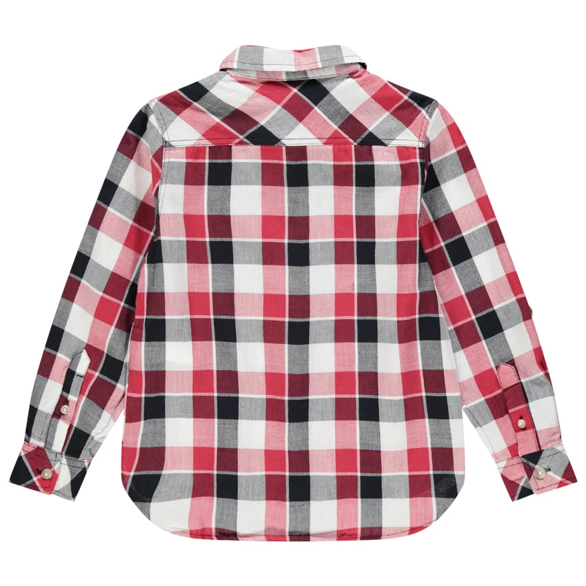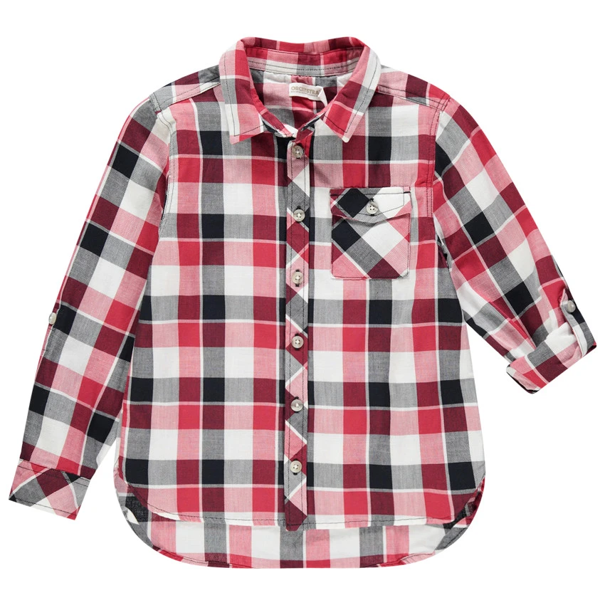 Chemise manches longues à carreaux pour enfant garçon. Col chemise. Ouverture boutonnée devant. 1 poche à rabat boutonné sur la poitrine. Manches rétractables par patte boutonnée. Poignets patte capucin 2 boutons.