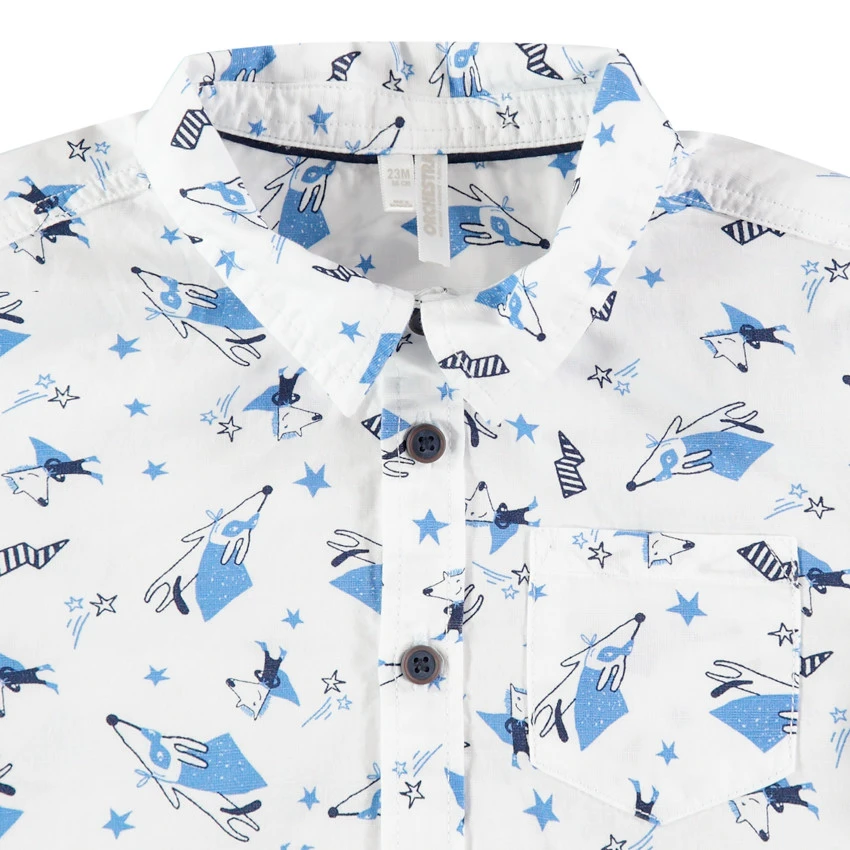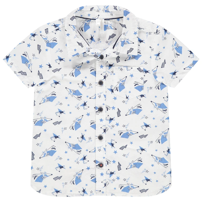 Chemise manches courtes à imprimés fantaisie all-over. Col chemise. Ouverture boutonnée devant. 1 poche plaquée sur la poitrine.