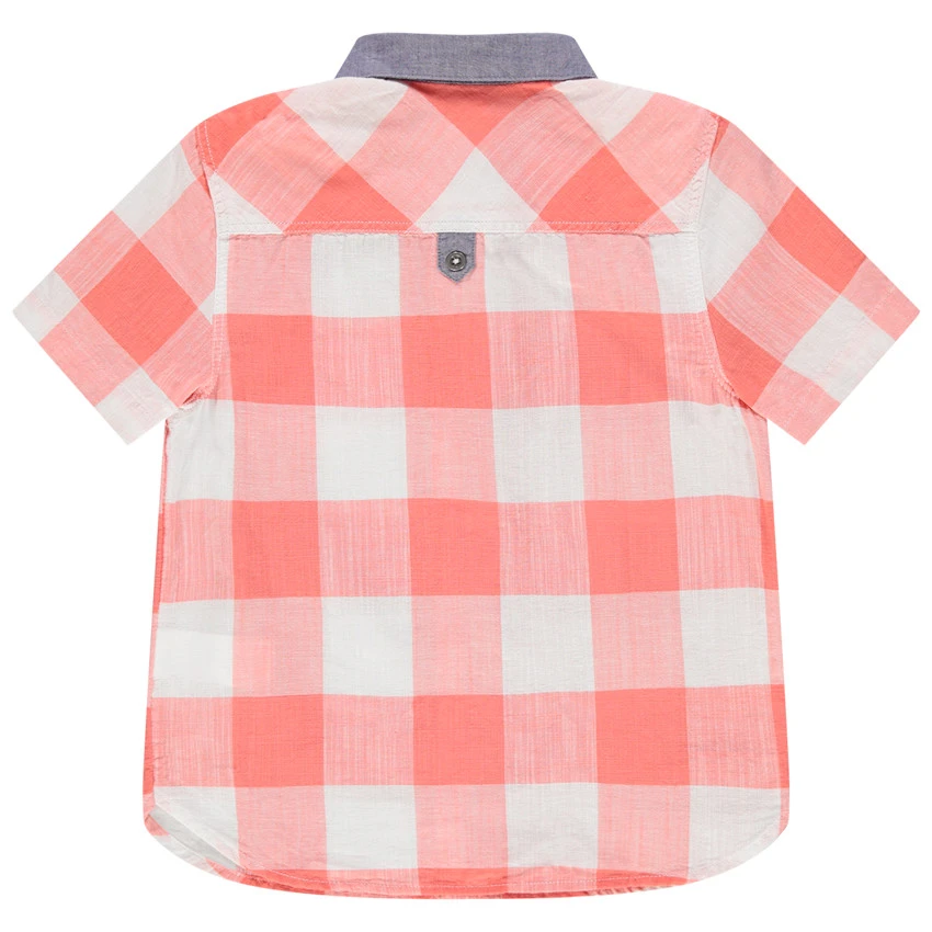 Chemise manches courtes à carreaux contrastés. Col en chambray. 1 poche plaquée sur la poitrine. Ouverture boutonnée sur le devant. Patte boutonnée au dos.