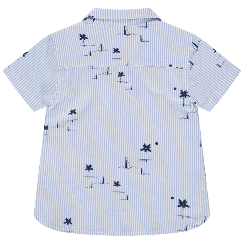 Chemise manches courtes en coton. Rayures verticales et motifs fantaisie all-over. 1 poche plaquée sur la poitrine.