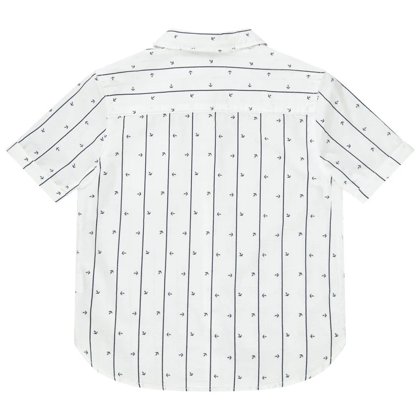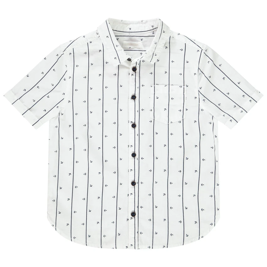 Chemise manches courtes. Col de chemise. Ouverture boutonnée. 1 poche plaquée. Rayures et motif all-over.