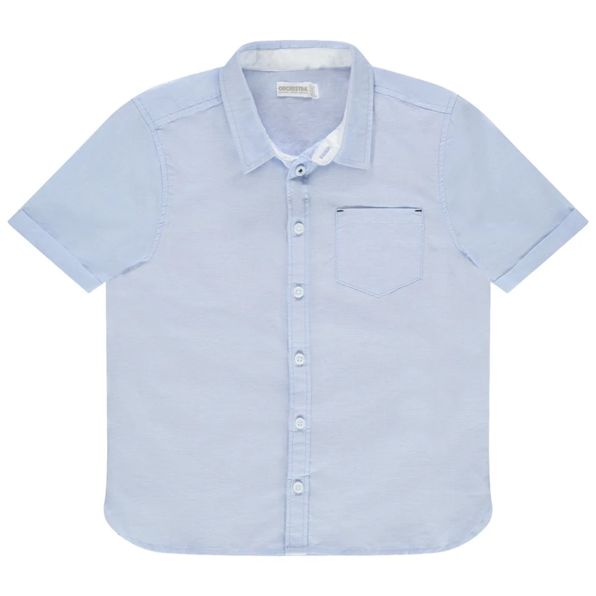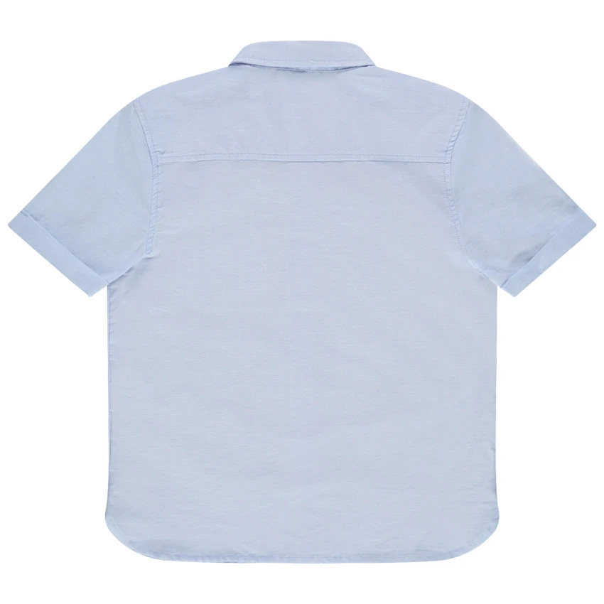 Chemise manches courtes unie. Col chemise. Ouverture boutonnée devant. 1 poche plaquée sur la poitrine. Revers au bout des manches. Dos uni.