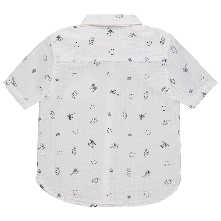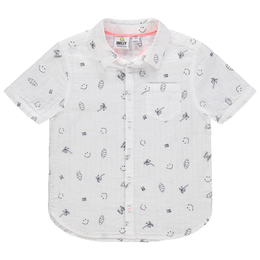 Chemise manches courtes en coton. Col chemise. Ouverture boutonnée sur le devant. Imprimé Smiley all-over. Revers au bout des manches. 1 poche plaquée sur la poitrine.