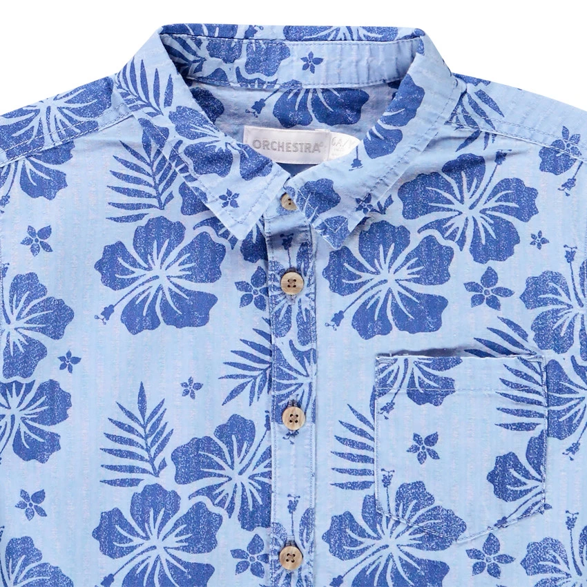 Chemise manches courtes. Col chemise. Ouverture boutonnée sur le devant. Une poche plaquée sur la poitrine. Imprimé fleuri all-over.