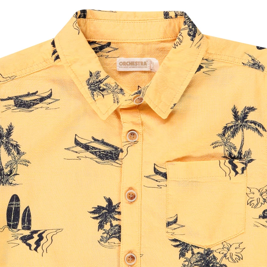 Chemise Manches Courtes Imprimé Surfs/palmiers/bateaux Pour Garçon