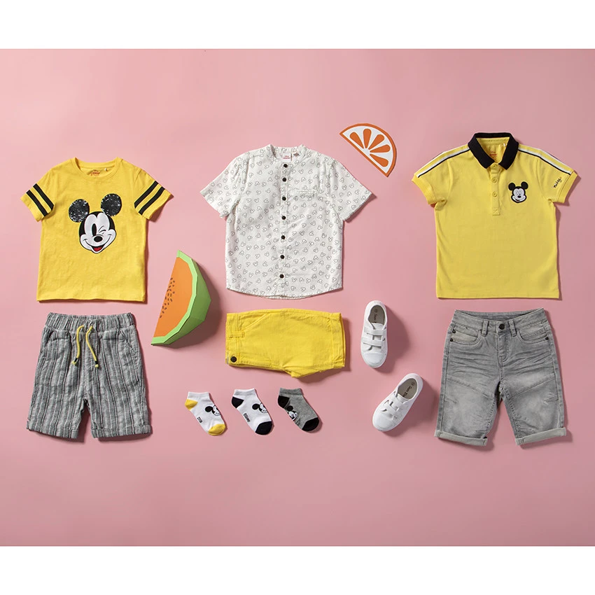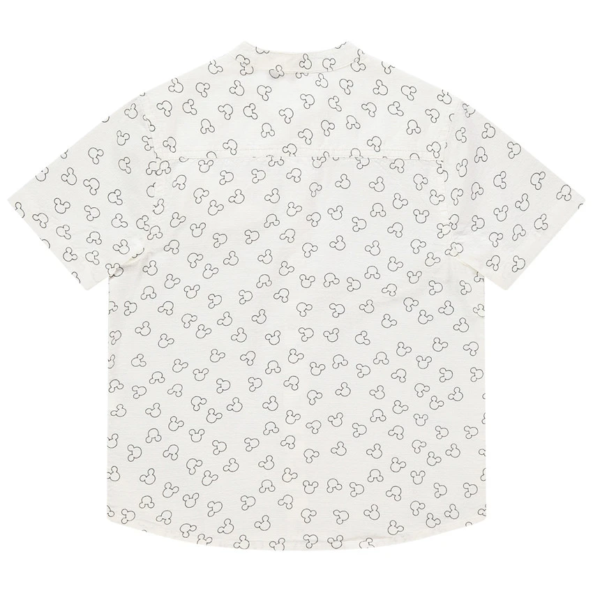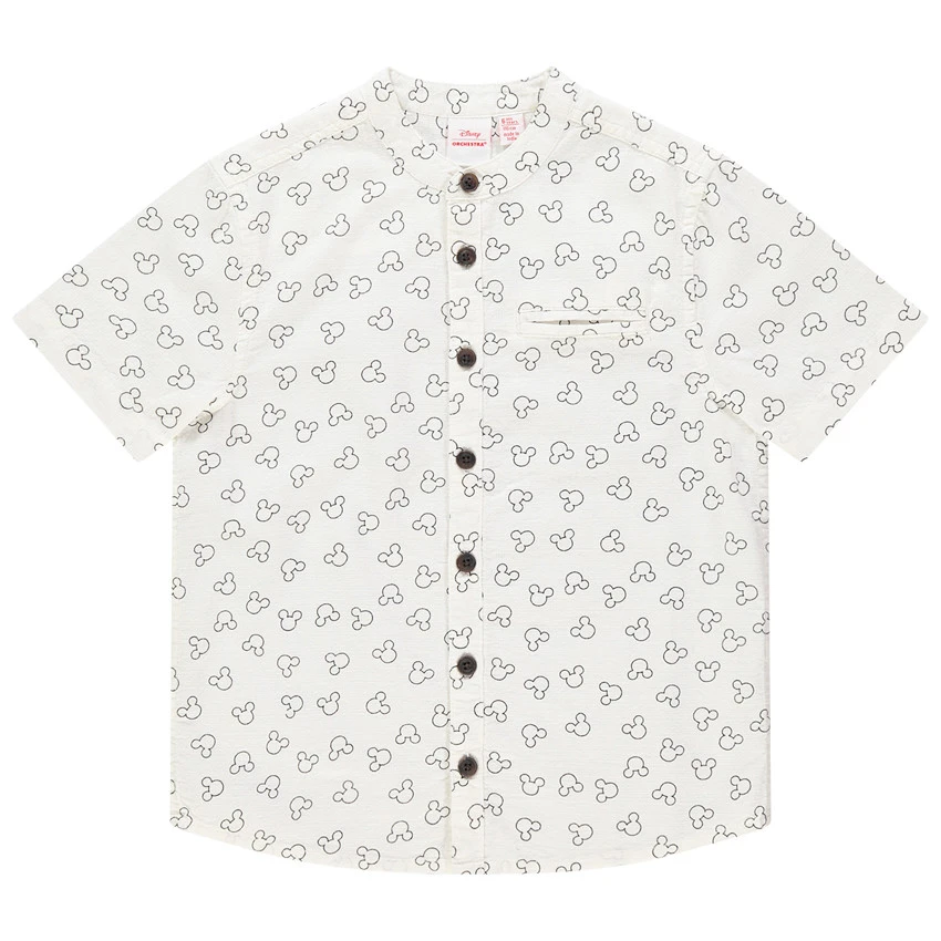 Chemise en coton. Col mao. Serti Mickey imprimé all-over. Ouverture boutonnée sur le devant. 1 poche passepoilée sur la poitrine.