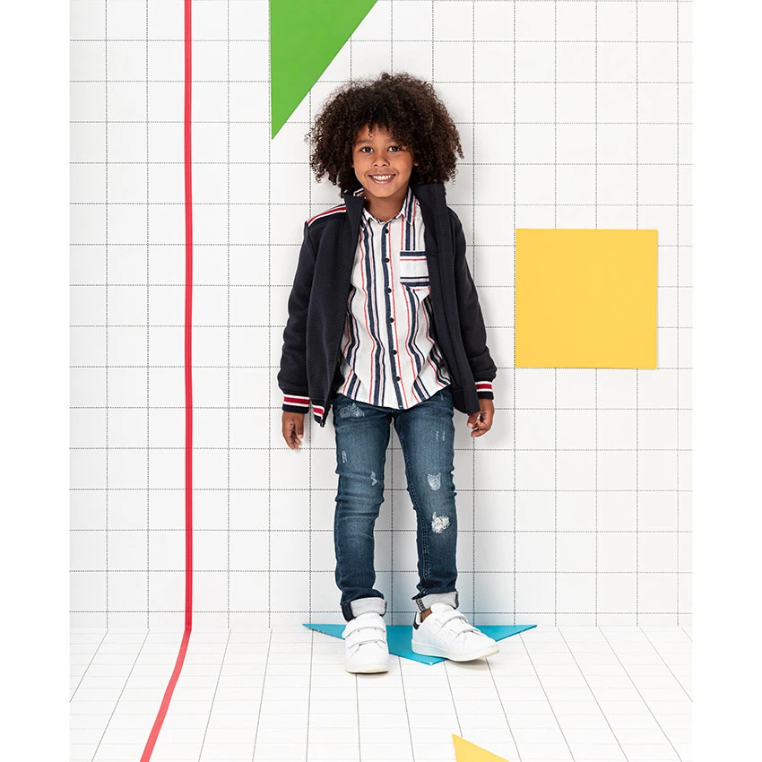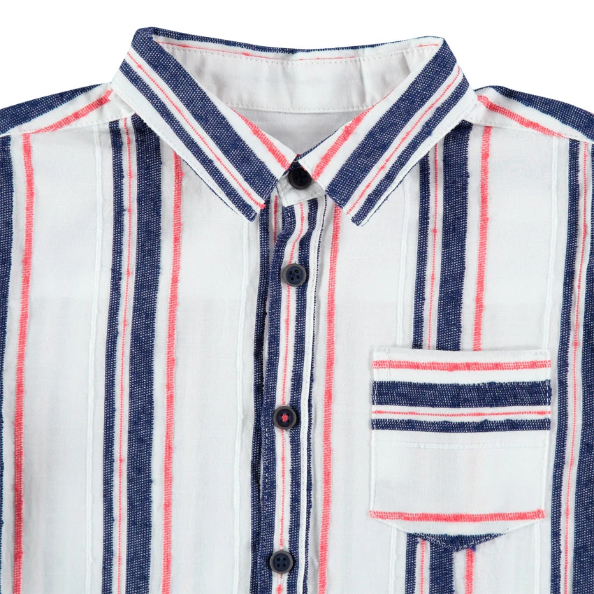 Chemise manches longues. Rayures verticales contrastées. 1 poche plaquée sur la poitrine. Ouverture boutonnée sur le devant. Poignets patte capucin 2 boutons.