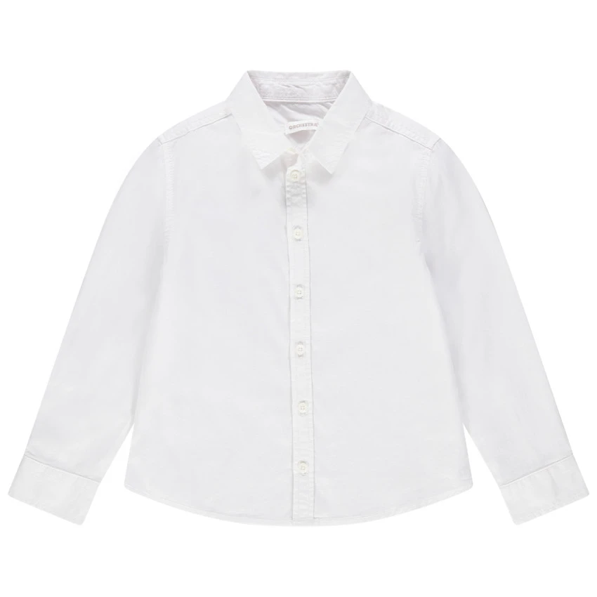Chemise manches longues unie pour enfant garçon. Col chemise. Ouverture boutonnée devant. Poignets boutonnés.