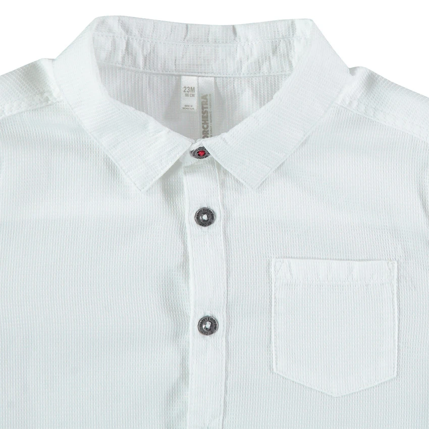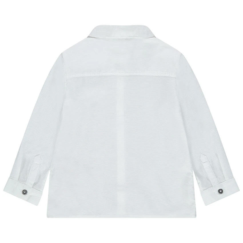Chemise manches longues en maille fantaisie. Col chemise. Ouverture boutonnée devant. 1 poche plaquée sur la poitrine. Camion de pompier printé devant. Dos uni.