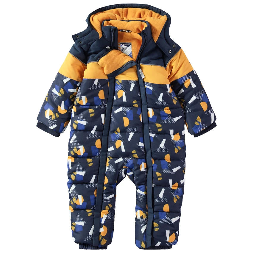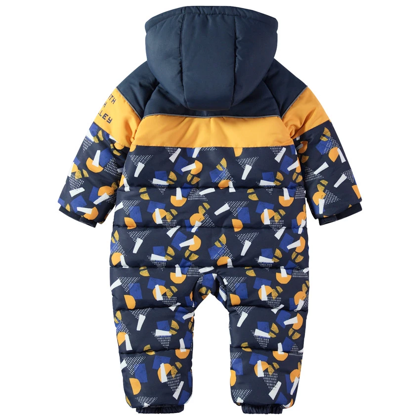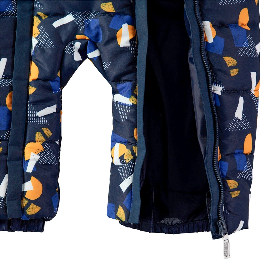 Combi-pilote de ski imprimée all-over. Capuche enveloppante. Doublure en micropolaire. Double ouverture zippée devant. Poignets et chevilles élastiqués. Inscription printée sur la manches gauche.