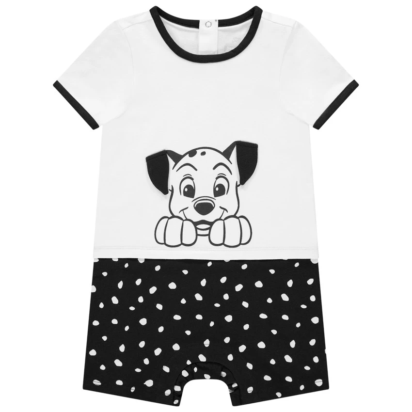 Combinaison courte effet 2 en 1 en coton issu de l’agriculture biologique. Encolure ronde. Dalmatien printé devant avec oreilles en relief. Bas de la combinaison à pois. Entrejambe pressionné. Ouverture pressionnée au dos.