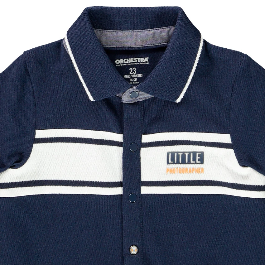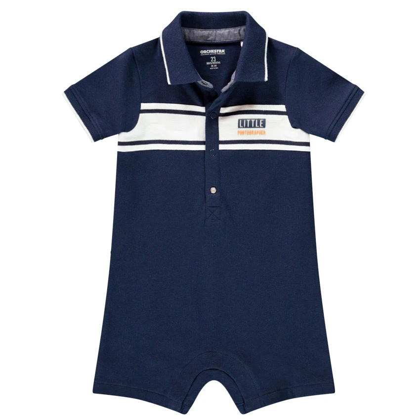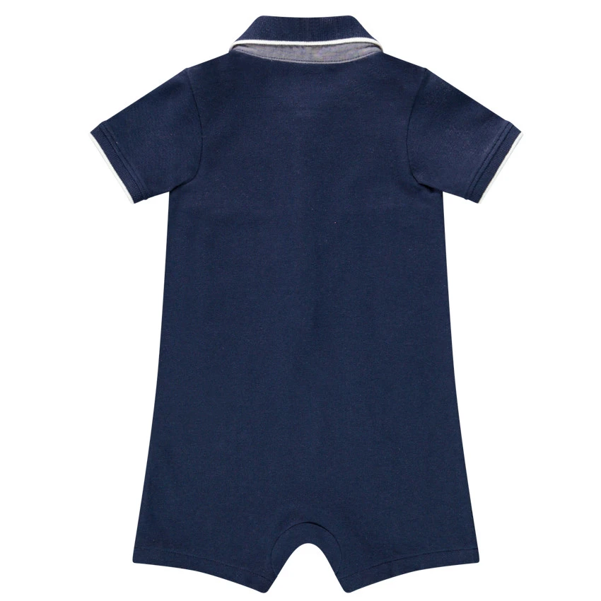Combinaison courte. Col polo. Ouverture boutonnée sur le devant. Bande contrastée sur la poitrine.