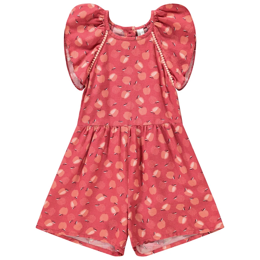 Combinaison courte imprimée pommes. Encolure ronde. Manches volantées. Galons à pompons. Ouverture boutonnée au dos. Imprimé pommes all-over.
