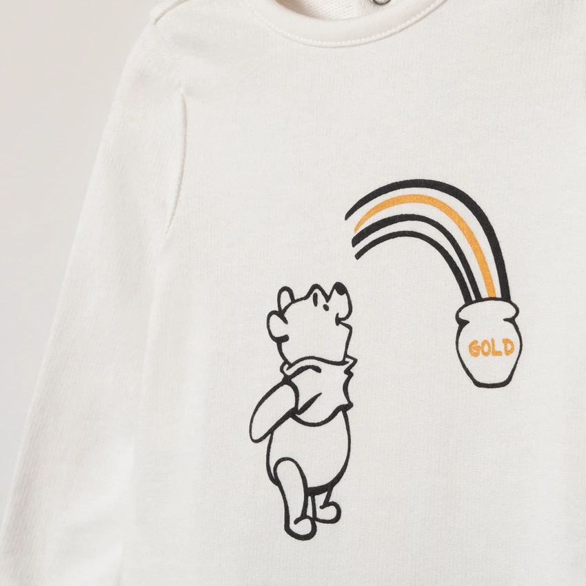 Combinaison longue en maille. Print Winnie l’Ourson. Bas avec motifs fantaisies all-over. Chevilles élastiquées. Ouverture pressionnée au dos.