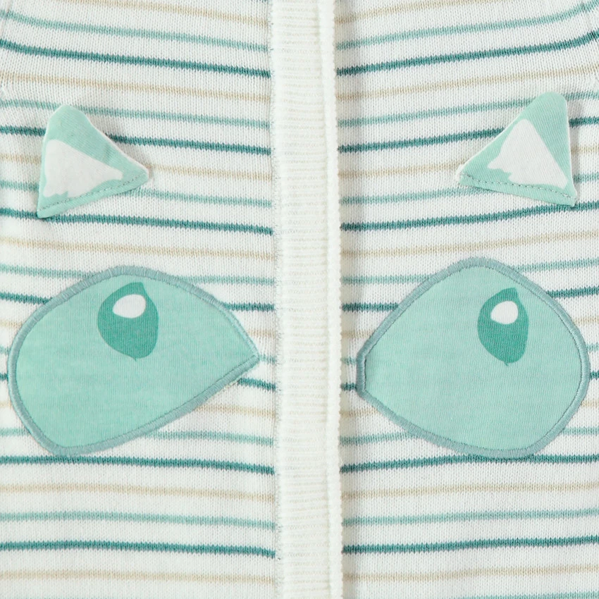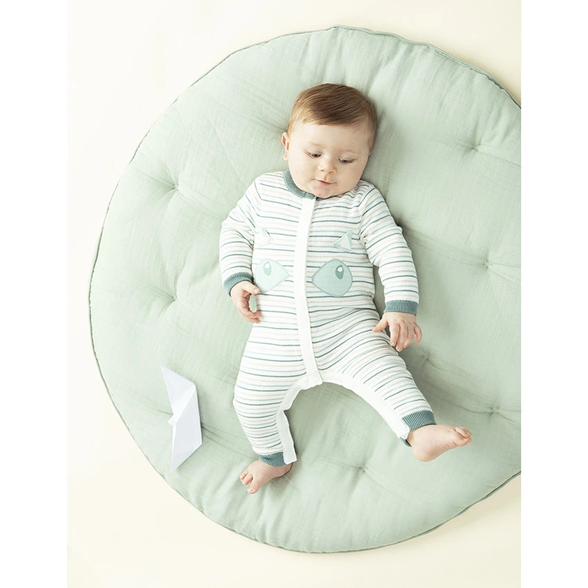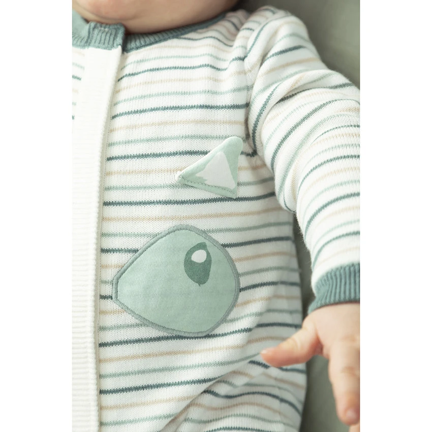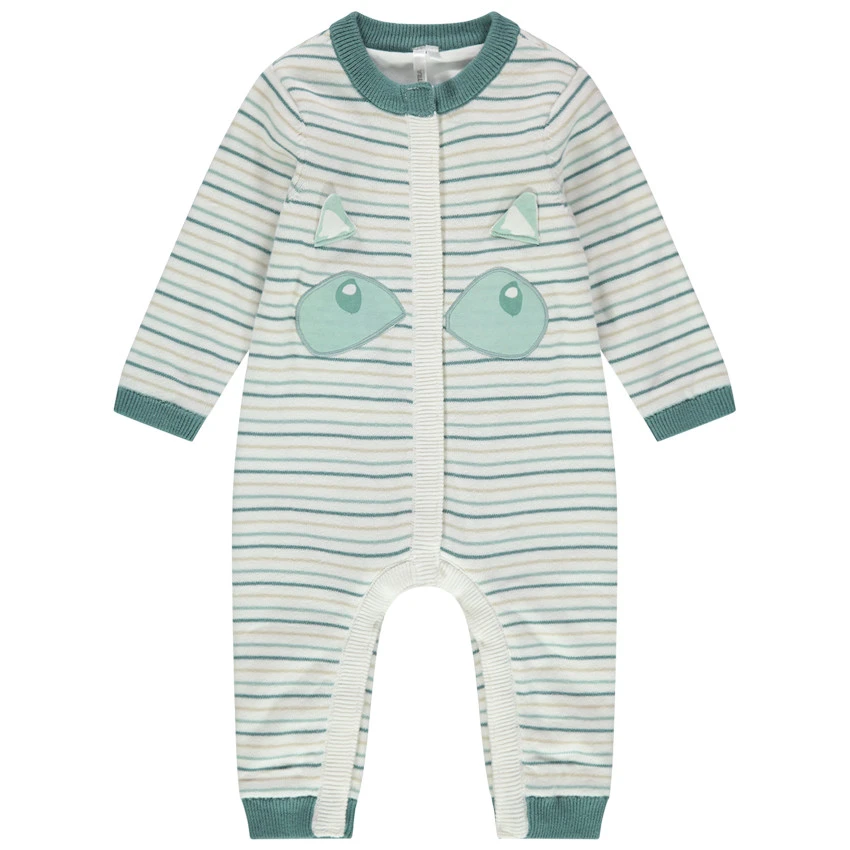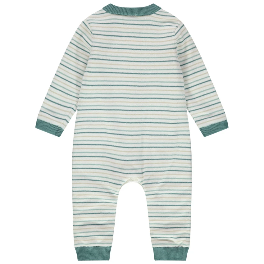 Combinaison en tricot à rayures all-over. Encolure ronde en bord-côte. Doublure en jersey. Détails patchés sur le devant. Pieds et poignets en bord-côte.