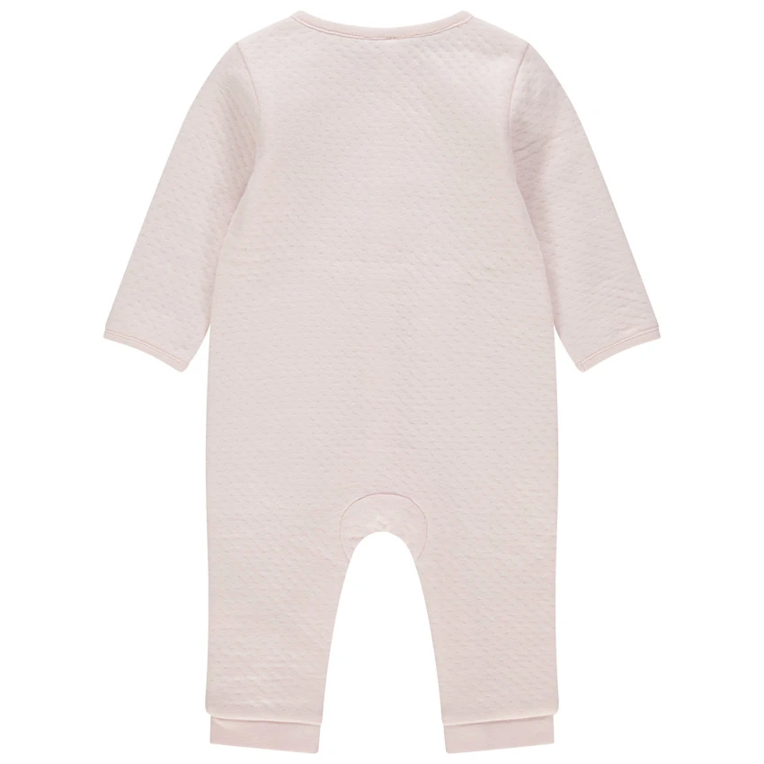 Combinaison longue en maille fantaisie. Encolure ronde avec boutons fantaisie. Hérisson et chouette brodés avec détails en relief. Ouverture pressionnée devant et à l’entrejambe.