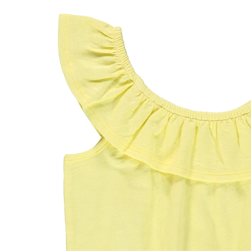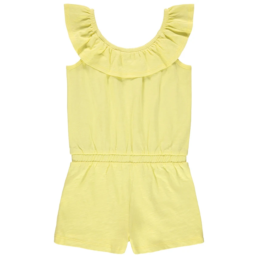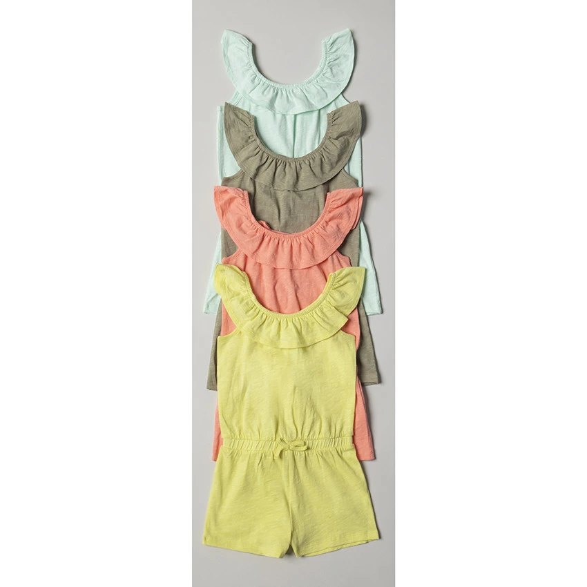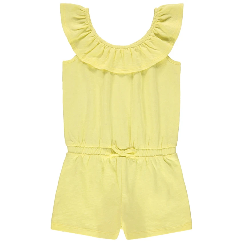 Combishort en maille. Encolure éslatiquée volantée pour l’enfiler facilement. Taille élastiquée à cordons de serrage pour une bonne tenue à la taille.