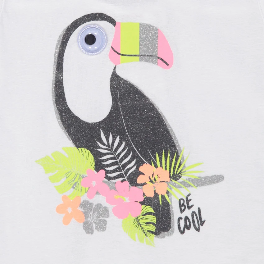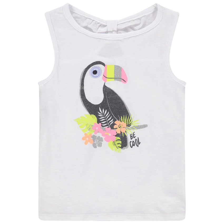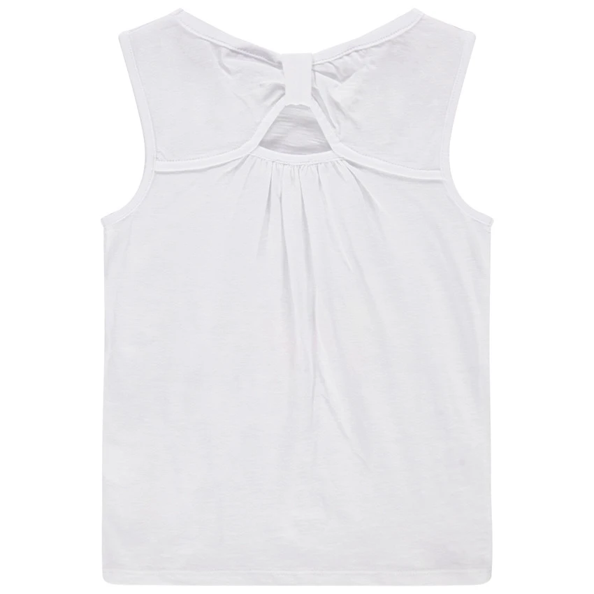 Débardeur avec print fantaisie sur le devant. Détail en relief. Inscription sur le devant. Ouverture dans le dos.