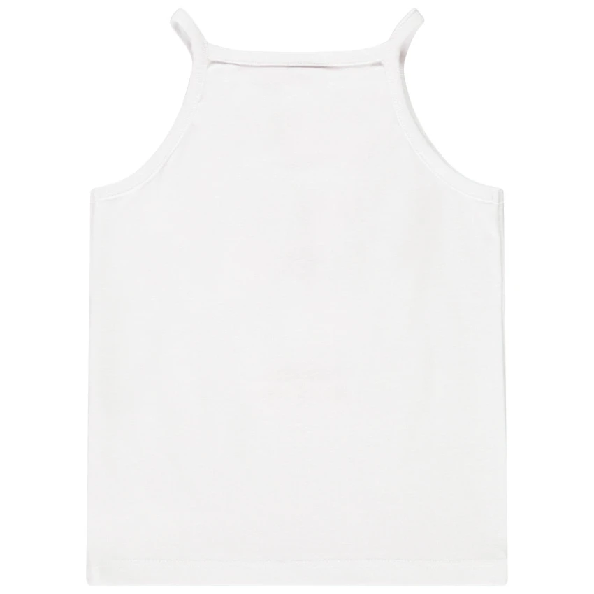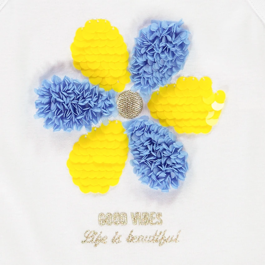 Débardeur fantaisie en jersey. Bretelles fines. Encolure ronde avec biais. Fleur bicolore en sequins et broderies sur le devant. Dos uni.