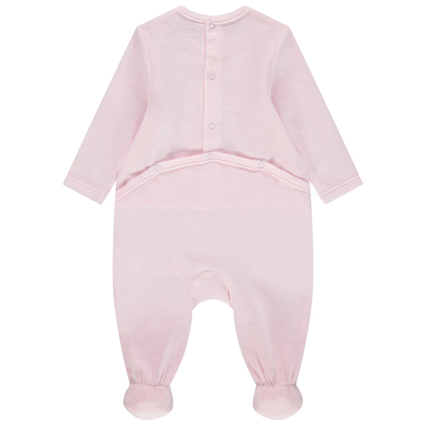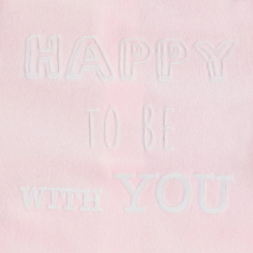 Dors-bien en velours uni. Encolure ronde. Inscription printée sur le devant. Ouverture pressionnée dos et pont.