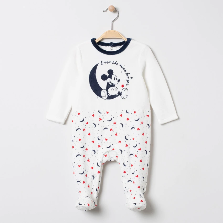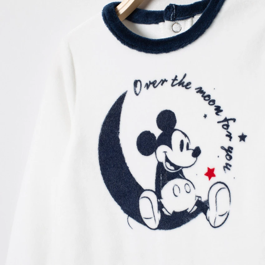 Dors-bien en velours. Encolure ronde. Ouverture pressionnée au dos. Print Mickey sur le devant.