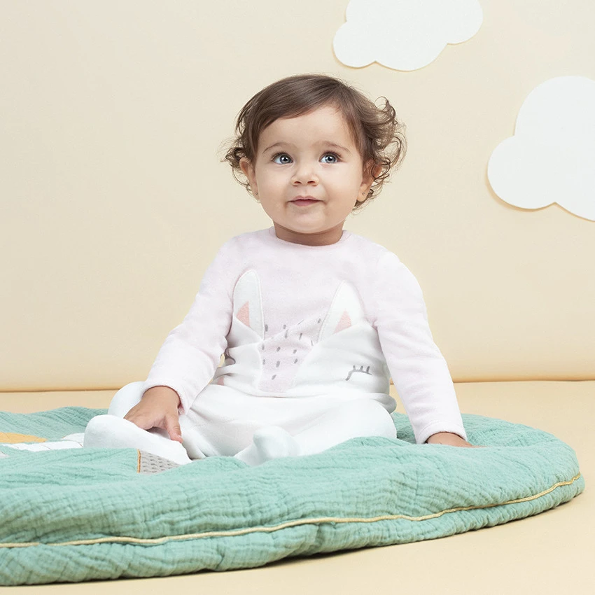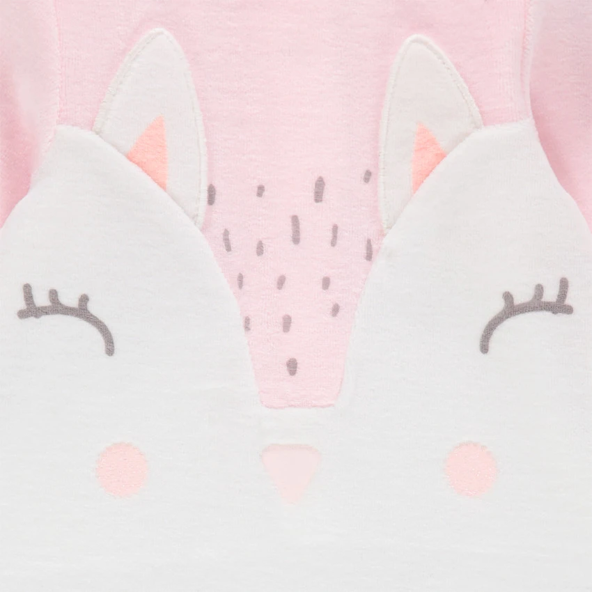Dors-bien en velours motif lapin. Encolure ronde. Motif lapin Ă oreilles brodĂ©es sur le devant. Ouverture pressionnĂ©e dos et pont.Â