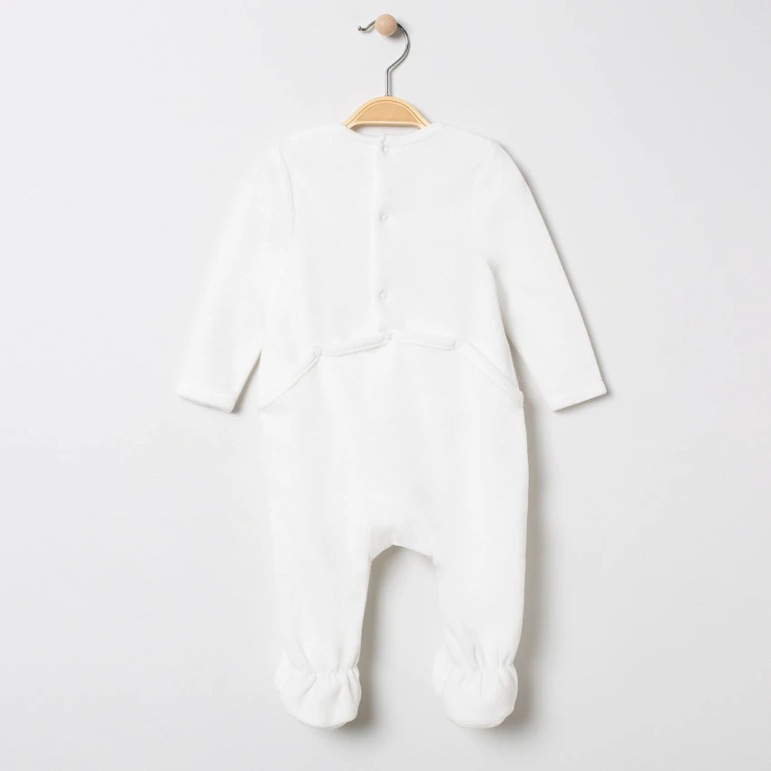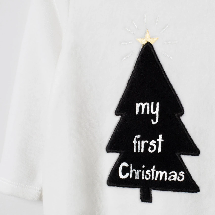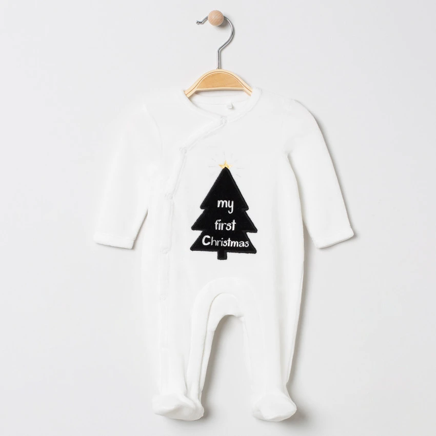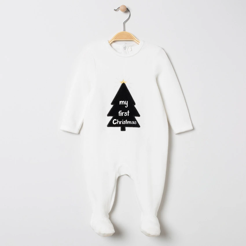 Dors-bien en velours. Encolure ronde. Sapin de Noël brodé devant. Ouverture pressionnée devant du 1 au 6 mois. Ouverture pressionnée dos et pont du 9 au 23 mois. Entrejambe pressionné pour faciliter le change.