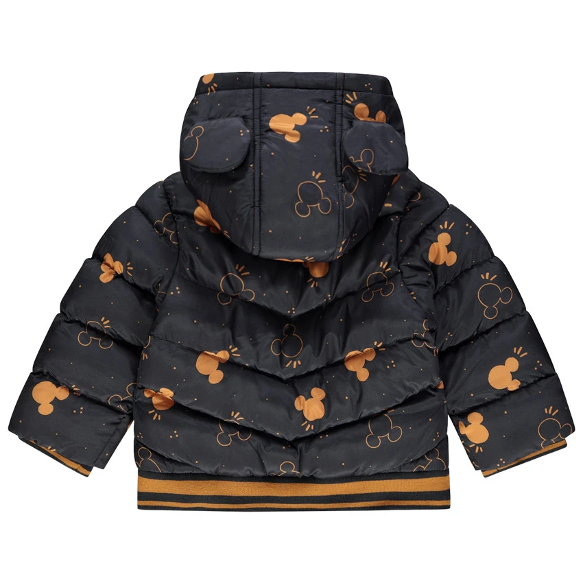 Doudoune à capuche à oreilles en relief. Sertis Mickey printés all-over. Doublure en sherpa. Ouverture zippée sur le devant. 2 poches coupées devant. Finitions en bord-côte.