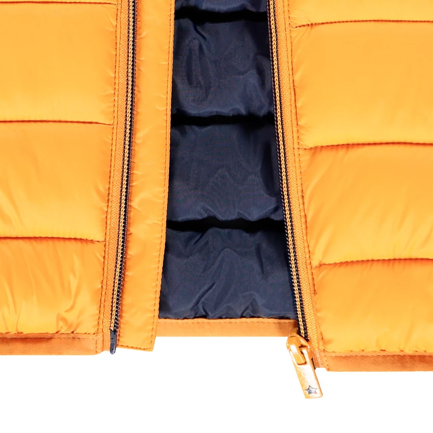Doudoune légère matelassée à capuche. Doublure de la capuche contrastée. Ouverture zippée sur le devant. 2 poches passepoilées. Poignets et bas resserrés.