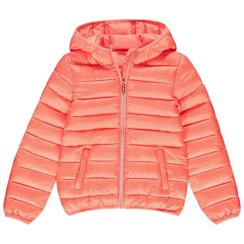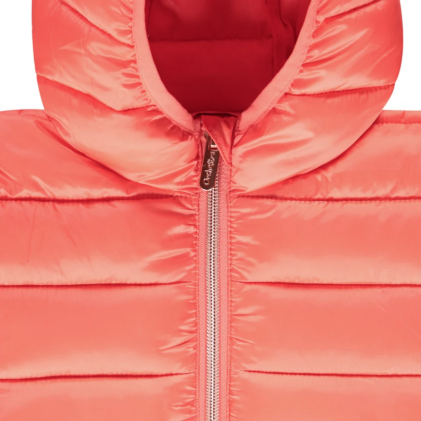Doudoune légère à capuche. Ouverture zippée sur le devant pour l’enfiler facilement. 2 poches coupées sur le devant.