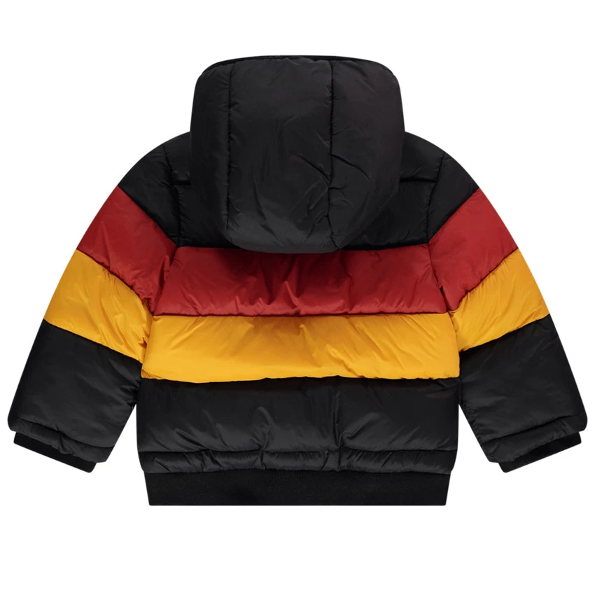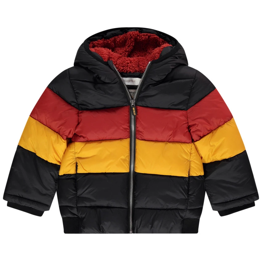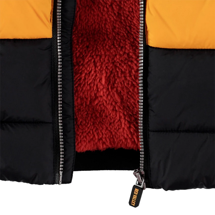Doudoune matelassée à bandes contrastées. Doublure en sherpa. Ouverture zippée devant. Intérieur des poignets en bord-côte.