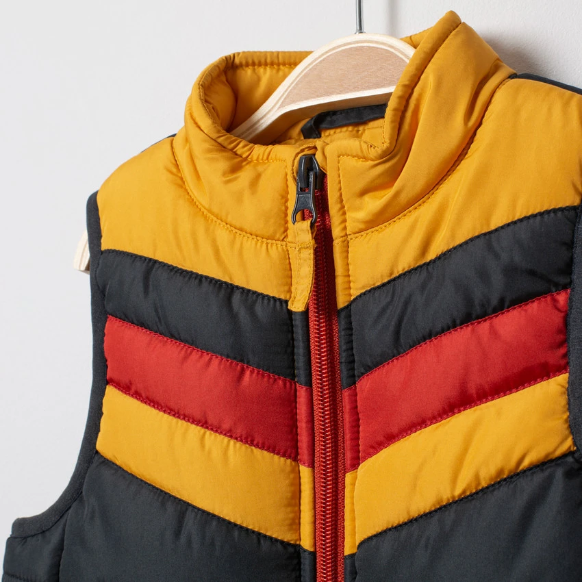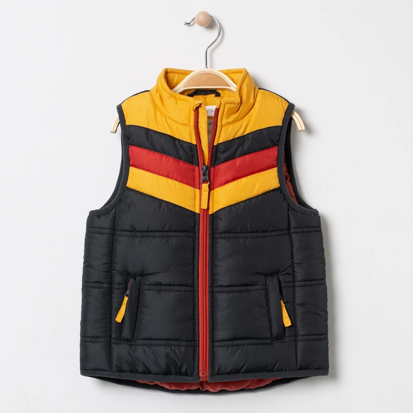 Doudoune sans manches matelassée. Col montant. Ouverture zippée devant. Bandes contrastées. 2 poches zippées devant. Doublure contrastée en nylon.