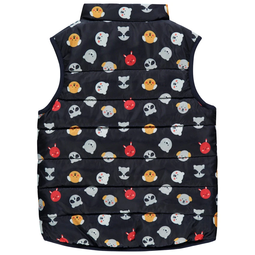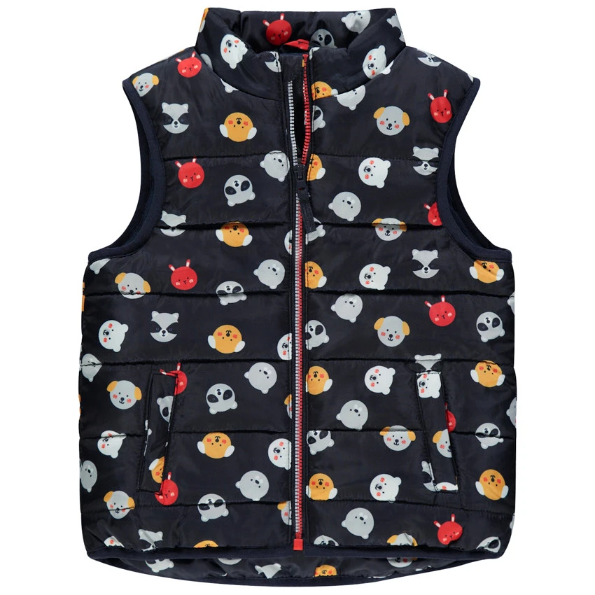 Doudoune sans manches matelassée. Col montant. Ouverture zippée sur le devant. Zip bicolore. Animaux printés all-over. 2 poches coupées devant. Doublure en micropolaire.