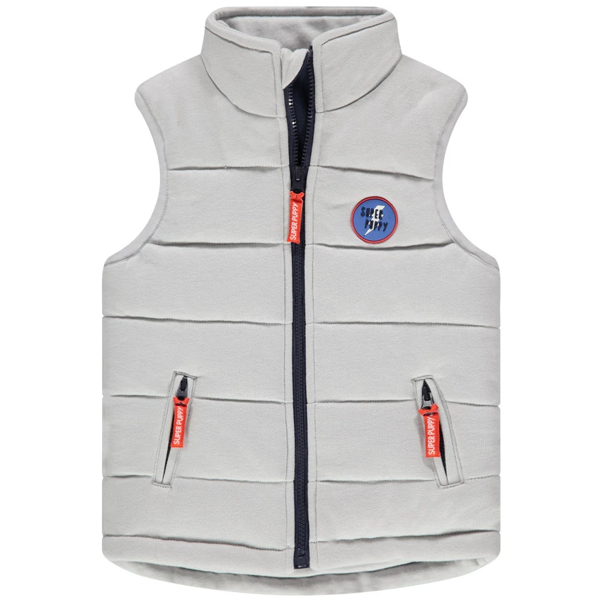 Doudoune matelassée sans manches. Col montant. Ouverture zippée devant. Badge en gomme sur la poitrine. 2 poches zippées devant.